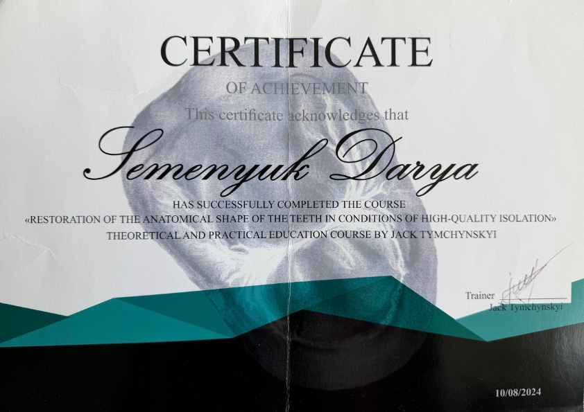 Постоянно повышает квалификацию и усовершенствует практические навыки, проходя специализированные учебные курсы и мастер-классы.